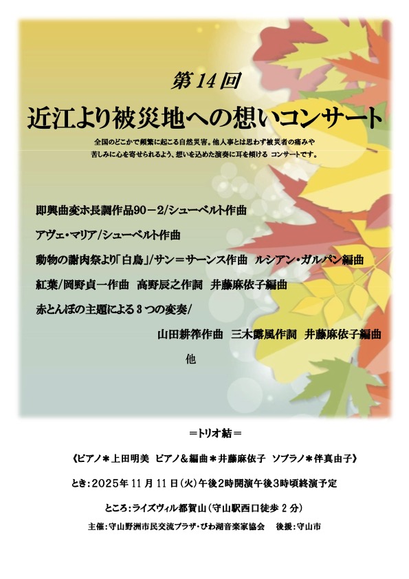 「第14回被災地への想い」コンサートに、出演させていただきます。